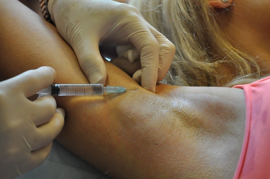Во время процедуры тончайшими иглами под кожу, в областях расположения потовых желез, вводится минимальное количество препарата. Количество инъекций назначается врачом, производящим лечение.