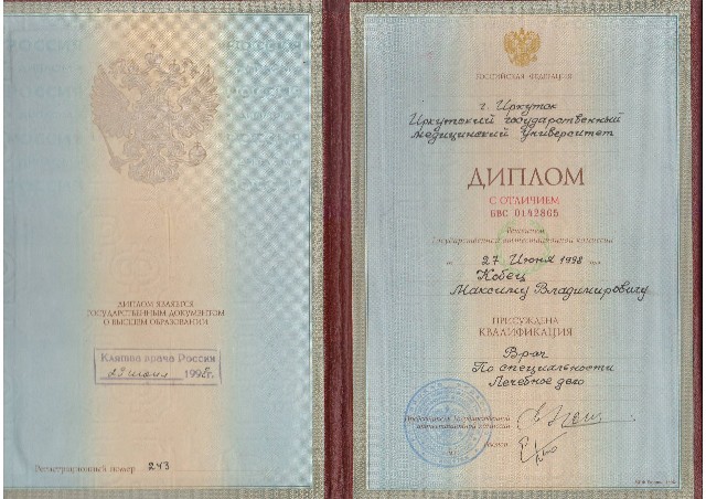 - С 1998 по 1999 годы – интернатура на кафедре офтальмологии Иркутского медицинского университета.